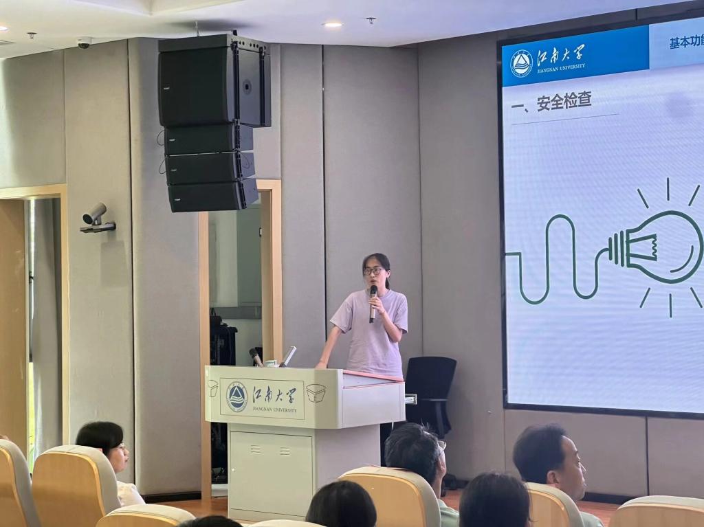活动伊始,江南大学宜兴研究生院办公室副主任倪寒冰致辞,她强调实验室安全是科研工作的基石,呼吁同学们将安全意识深植心中,全面落实安全实验的各项要求,校区办也将全力做好师生在东氿校区的保障工作。随后,上海飞域实验室设备有限公司总经理杨安兴分享实验室安全管理的前沿理念,详细讲解了实验室危化品的系统管理及应急处置流程等。无锡粒子云信息科技有限公司工程师庞丽丽进行了实验室安全管理系统的现场演示,介绍了基本功能,实验室基础信息管理和危化品管理模块。通过实际操作,为现场师生答疑解惑,解决了同学们在日常使用中可能遇到的各种问题。