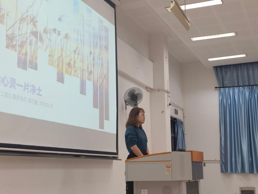 为进一步贯彻落实《高等学校学生心理健康教育指导纲要》精神,在我院研究生群体中深入开展心理健康教育,宣传普及心理健康知识,促进我院研究生的身心健康,提高研究生的心理健康素质,2021年11月3日晚6点30分,人工智能与计算机学院党委秘书、国家二级心理咨询师缪可嘉老师在江南大学第二教学楼给betway中国西汉姆联官网全体研究生新生带来了题为《给心灵一片净土》的心理健康讲座。