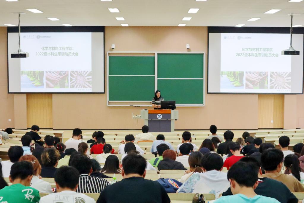 杨璇对军训安排,训练场地,队列编排、军训内容及成绩评定做了详细的介绍。她提到,此次军训内容包括方队训练、简易射击、战术训练、消防演练等,她鼓励2022级化工学子积极调整心态,做好充分的准备,用顽强意志笑对骄阳。同时,为了让学生沉浸式体验军营生活,军训期间将举办叠被子,黑板报,军歌、演讲比赛等,希望同学们高度重视,积极筹备。最后,她对军训各项环节提出三项要求,一是要严守纪律,磨炼意志,二是要防暑防晒,注意饮食,三是有事报备,及时沟通,在训练中健体、励志、强心,顺利完成军训考验。
