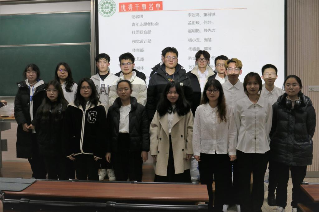 接着,各部门负责人按指定顺序依次上台汇报工作成果,回顾了上学期的部门招新工作、团建活动、工作任务以及表示了对未来工作的展望。各部门展示完毕后,学生会主席为各部门部长颁发聘任证书,并为各部门优秀干事颁发礼品。会后,全体学生会同学进行了合影留念。