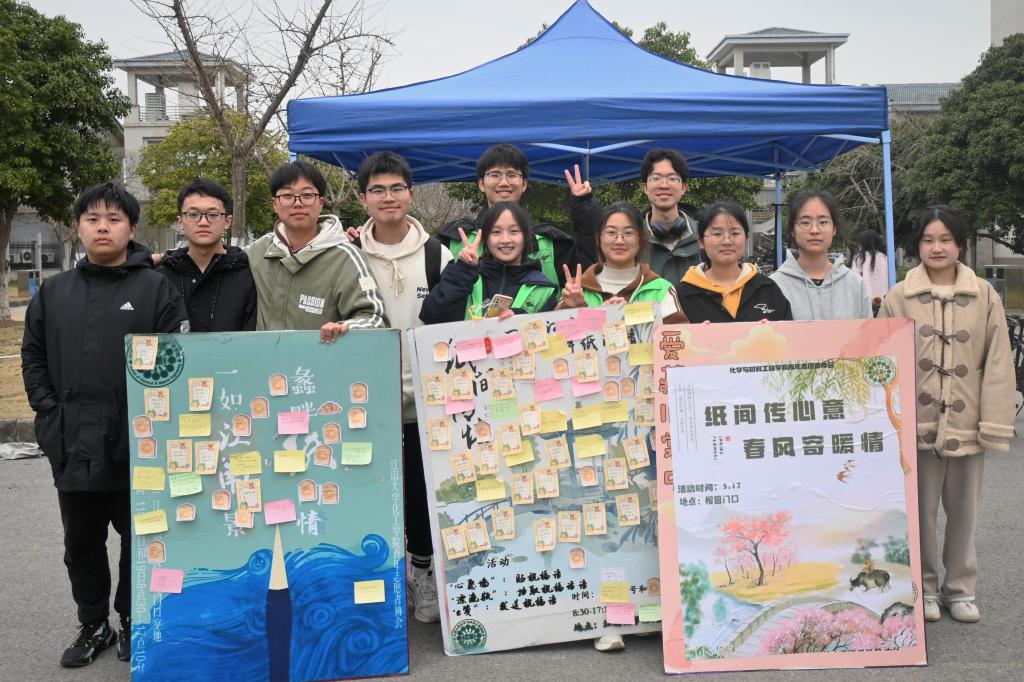3月17日,化工学院青协的志愿者们在江南大学北区榴园开展了以“纸间传心意,春风寄暖情”为主题的纸间传情活动。在同学们的积极参与中,活动圆满举办。