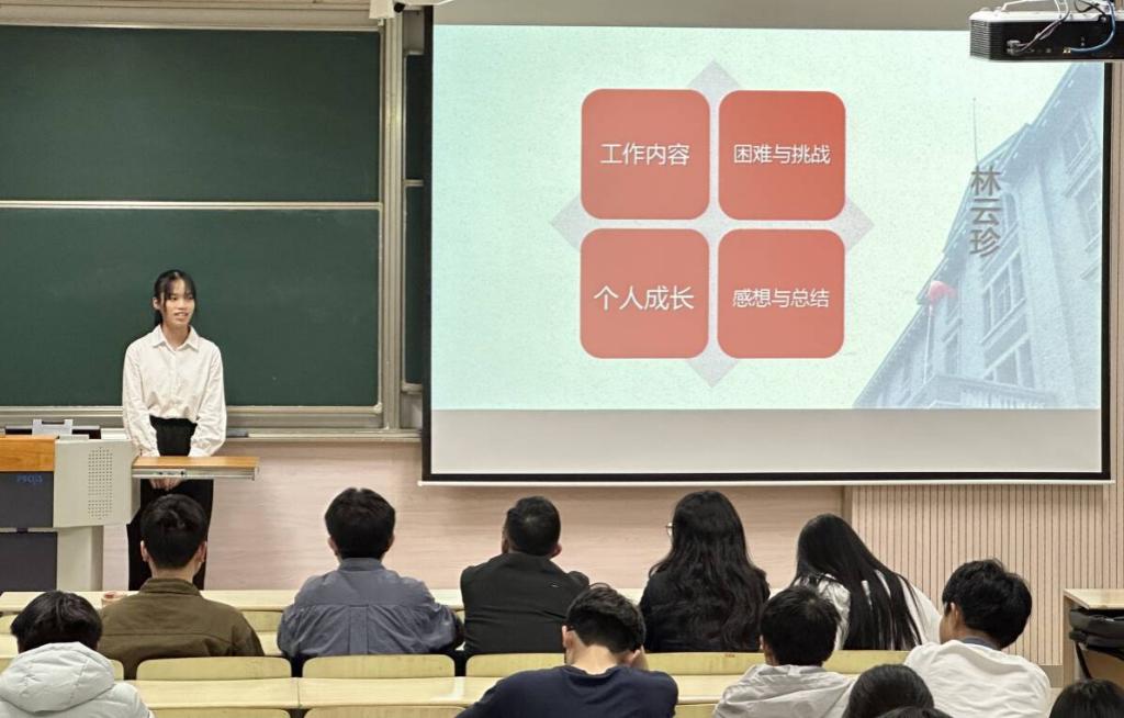 寒假期间,化工学院分团委主办、“鼋访风华”老兵寻访实践团承办的第二届“光辉的足迹”红色文化故事征集活动顺利举办,项目组收到了来自全校28支队伍报名,最终遴选出5份优秀参赛作品来到现场进行展示。在现场汇报中,5个参赛队伍分别就各自寒假期间的实践成果进行了生动详实的汇报。王歆宇提出利用3D打印技术打造红色文化产品的思考,荐轩辕团队以“青年使命”为主线展现了中国百年发展历程,“史海寻遗珠,实践铸丹心”团队以北大红楼为缩影赞美了中华民族的抗战精神,林云珍介绍了榴花公园中莞邑儿女英勇奋战的革命故事,隽鸿博讲述了范永全老兵在工兵一团的军旅故事。