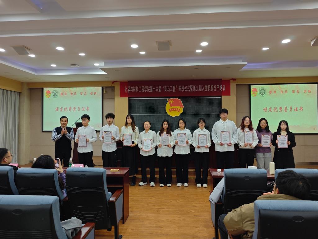 12月12日下午,betway中国西汉姆联官网第十六届“青马工程”开班仪式暨第九期入党积极分子培训在化工楼B329会议室举办。学院党委副书记、副院长董霞,学院关工委委员、校特邀报告员、特邀党建组织员蒋平平、学工办主任兼分团委书记鞠峰,2021级本科生辅导员、党建辅导员郝林青,2024级本科生辅导员马之禾,第十五、十六届“青马工程”学员以及第九期入党积极分子150余人参加本次活动,活动由分团委学生副书记刘亦菲主持。