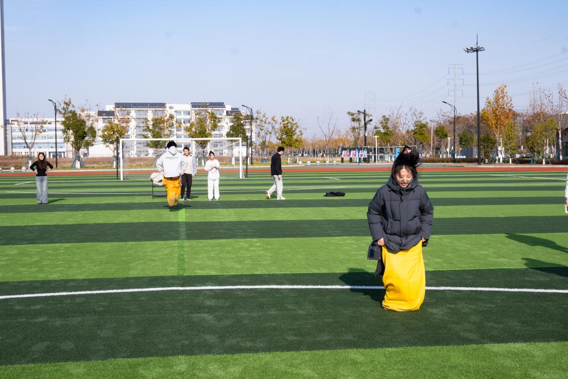 此次运动会设置了丰富多样、趣味十足的比赛项目,如“你画我猜”,选手通过肢体语言猜题;“小鸭赛跑”,需用膝盖夹气球接力;“布袋跳”,套布袋跳跃前进;“两人三足”,两人绑腿奔跑。此外,还有“趣味篮球赛”“趣味羽毛球赛”“双人跳绳” 等球类及跳绳项目,以及 “乒乓过河”“抛绣球”“旅行乒乓”“坐地起身” 等各具特色的游戏项目。这些项目既充满趣味又极具挑战,在充分考验个人能力的同时,更着重强调团队协作。同学们积极踊跃参与其中,尽情挥洒汗水,纵情享受运动带来的快乐。赛场上,欢呼声、呐喊声此起彼伏,同学们的热情如同燃烧的烈焰,驱散了冬日的严寒。