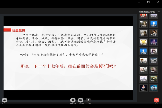 至此,高静老师带给青马训练营的学员门一堂精彩而又生动的课。课程虽然结束,但是学员们的学习还在进行,相信他们已经开始担负自己的责任,提升自己的能力,在疫情期间做自己最大的努力!