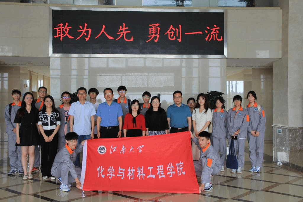 为深入学习贯彻习近平新时代中国特色社会主义思想主题教育,全面落实江南大学东氿校区人才培养和校企合作新举措,6月26日,学院与江苏三木化工股份有限公司共建签约暨教学实习基地揭牌仪式在江苏三木化工有限公司举行,企业总经理薛中群,技术副总惠正权,人力资源部部长曹梨松,学院党委副书记、副院长董霞,副教授、宜兴市科技镇长团团员刘敬成,材料系主任罗静,辅导员李晓洁及13名实习学生参加活动。本次活动由刘敬成主持。
