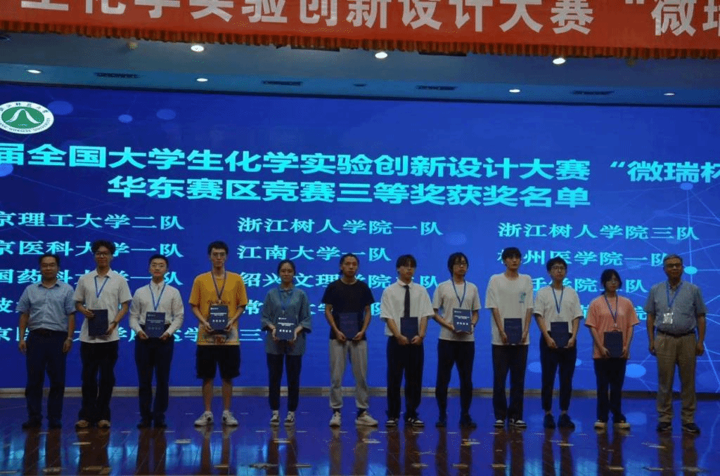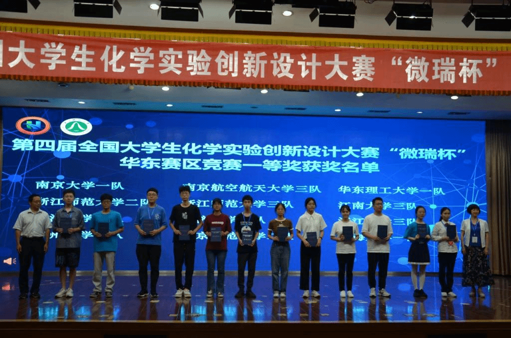 6月30日至7月2日,第四届全国大学生化学实验创新设计大赛“微瑞杯”华东赛区竞赛在浙江师范大学成功举办。本次竞赛由中国化学会和教育部高等学校国家级实验教学示范中心联席会主办,浙江师范大学承办。作品评审阶段共有来自华东三省市(江苏、上海、浙江)的64所高校、155支队伍参赛,通过专家函评最终遴选出来自51所高校的90支队伍入围现场答辩环节比赛。经过激烈角逐,我院参赛的三支队伍全部获奖。