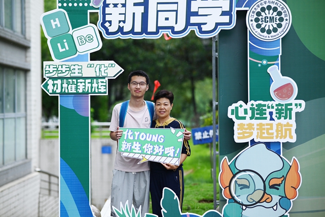 为保证新生及新生家长有良好的报到体验,学院在化工楼一楼设置新生报到区、家长休息区、创意拍照区,并安排学生志愿者在化工楼、宿舍园区、重要路口分别为新生提供路线引导、咨询解答,学生副班、学生会成员在报到现场帮助新生完成报到流程。学院还为2023级新生设计了特色签名墙,新生可以留下个人形象涂鸦,促进大家相互了解;还以化学元素作为设计主题,制作成打卡相框、钥匙扣、帆布袋,展现化工专业特色,也表达出对新生的美好祝愿。