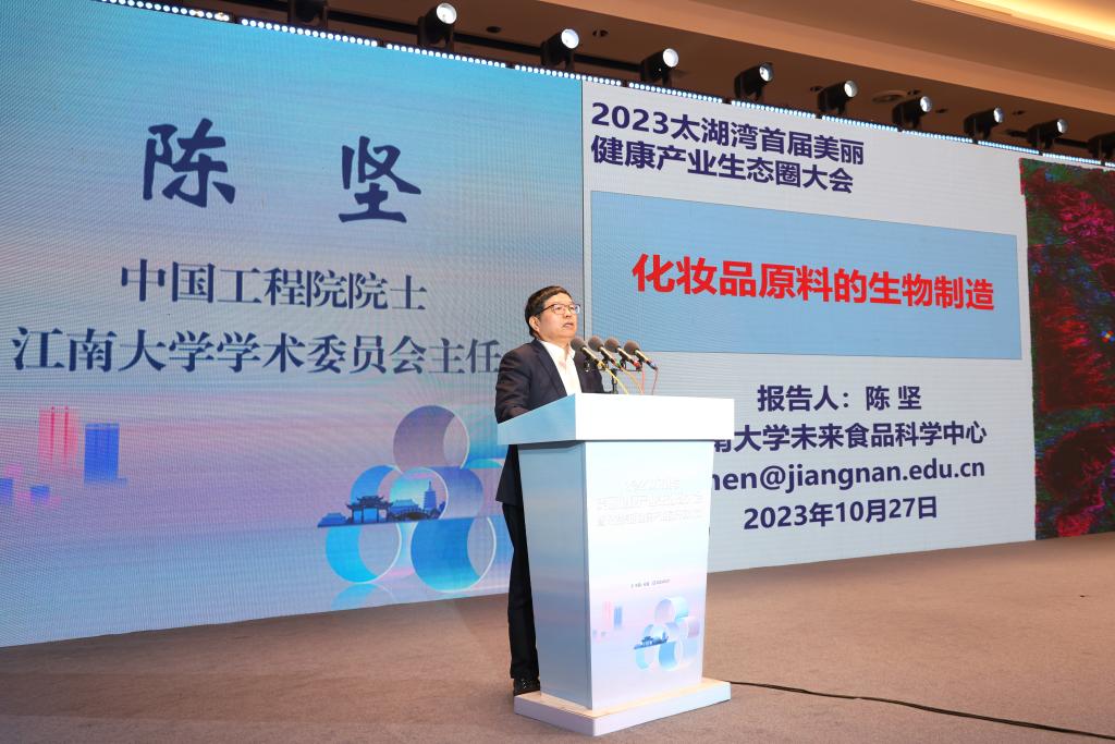 中国工程院院士、江南大学学术委员会主任陈坚作《化妆品原料的生物制造》主题报告