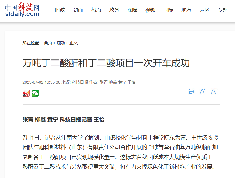石油基万吨级顺酐加氢制备丁二酸酐项目已成功产业化