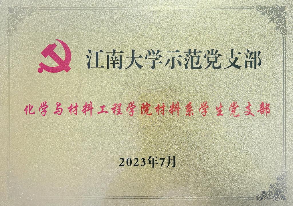 材料系学生党支部获批江南大学示范党支部