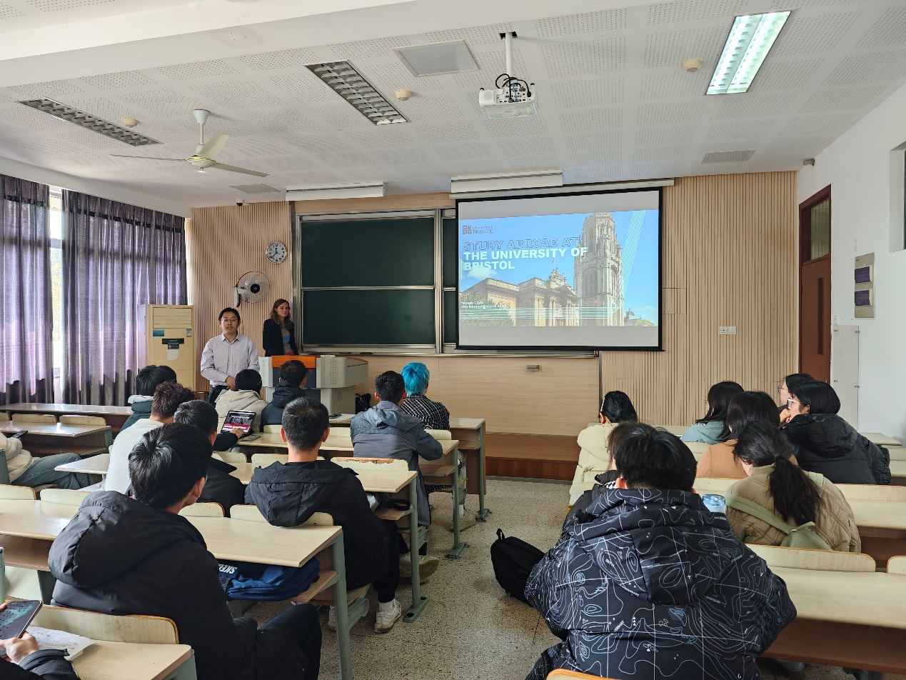 马丕明首先向同学们介绍了近年来学院与布里斯托大学紧密合作取得的成果,强调了布里斯托大学是一所世界高水平大学,该校在2024年QS世界排名第55位,其中化学学科在英国排名第1位;REF2021英国研究型大学排名前5位;2022年QS毕业生就业能力排行世界前50位,学校培养了13位诺贝尔奖获得者以及行业精英。随后简要介绍了江南大学化工学院与布里斯托大学开展的“3.5+0.5+1”本硕一体化联合培养项目、暑期夏令营以及研究生短期交流项目,引发同学们对此项目的关注。
