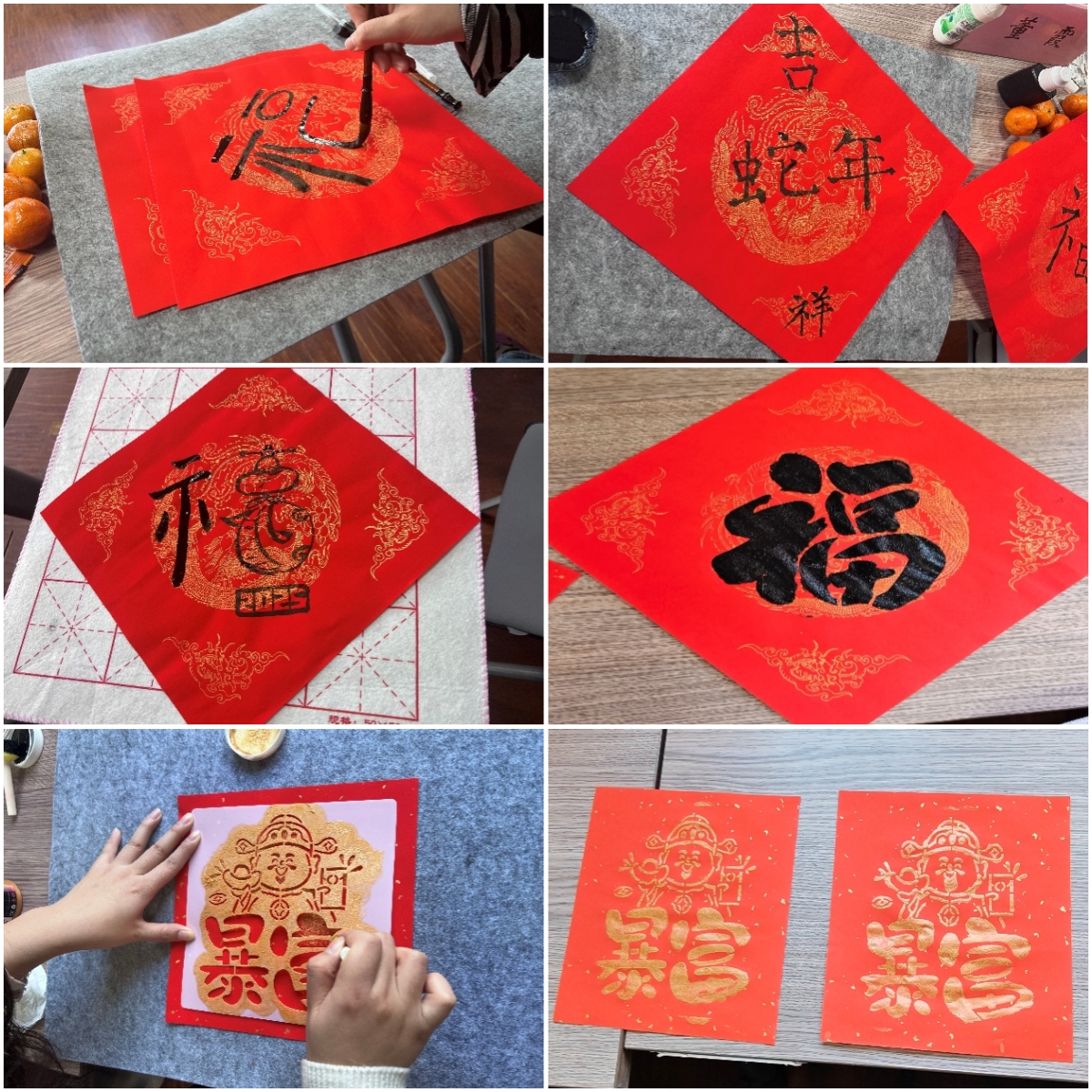 留校学生福字、拓印福字作品