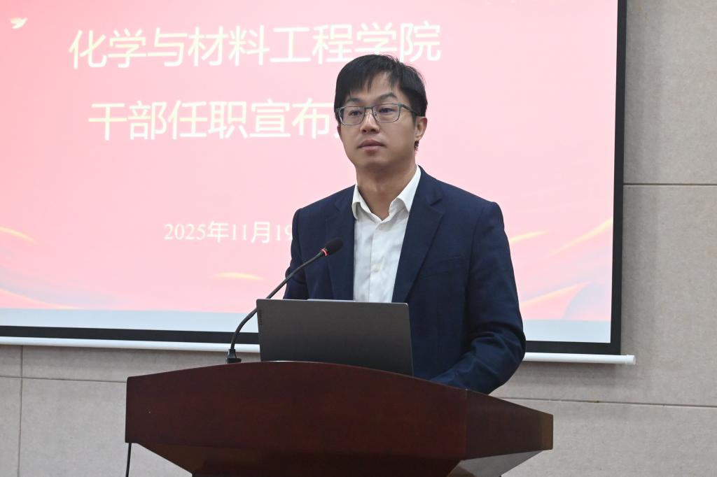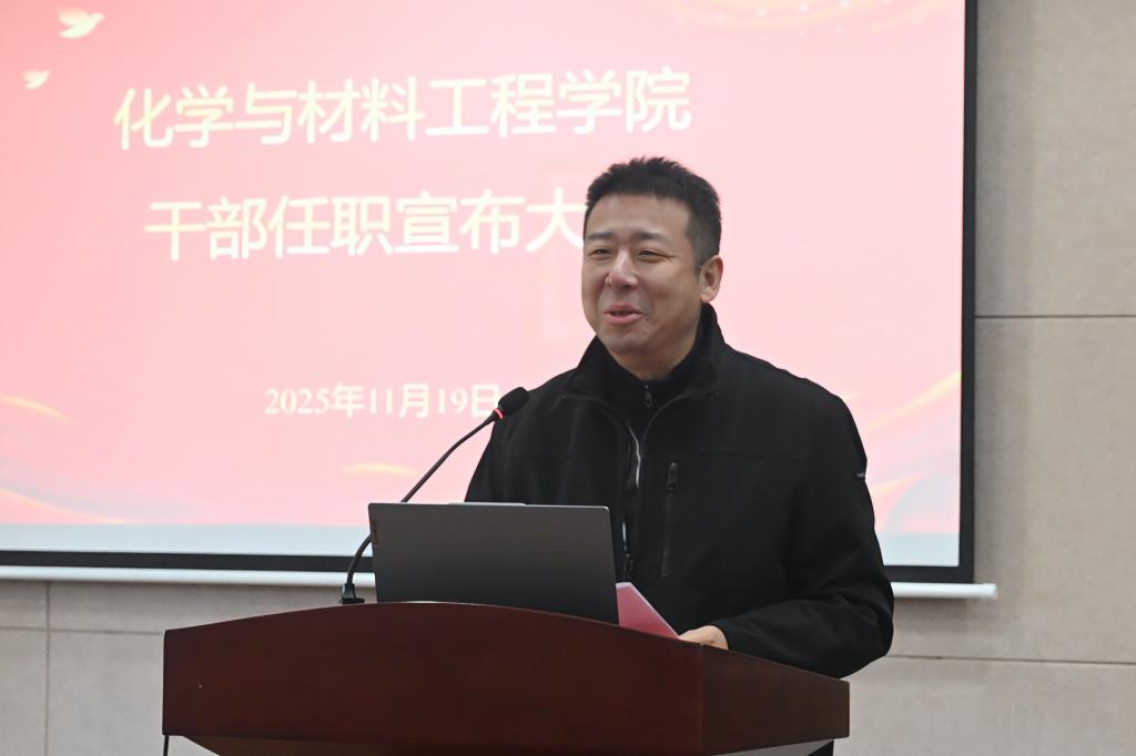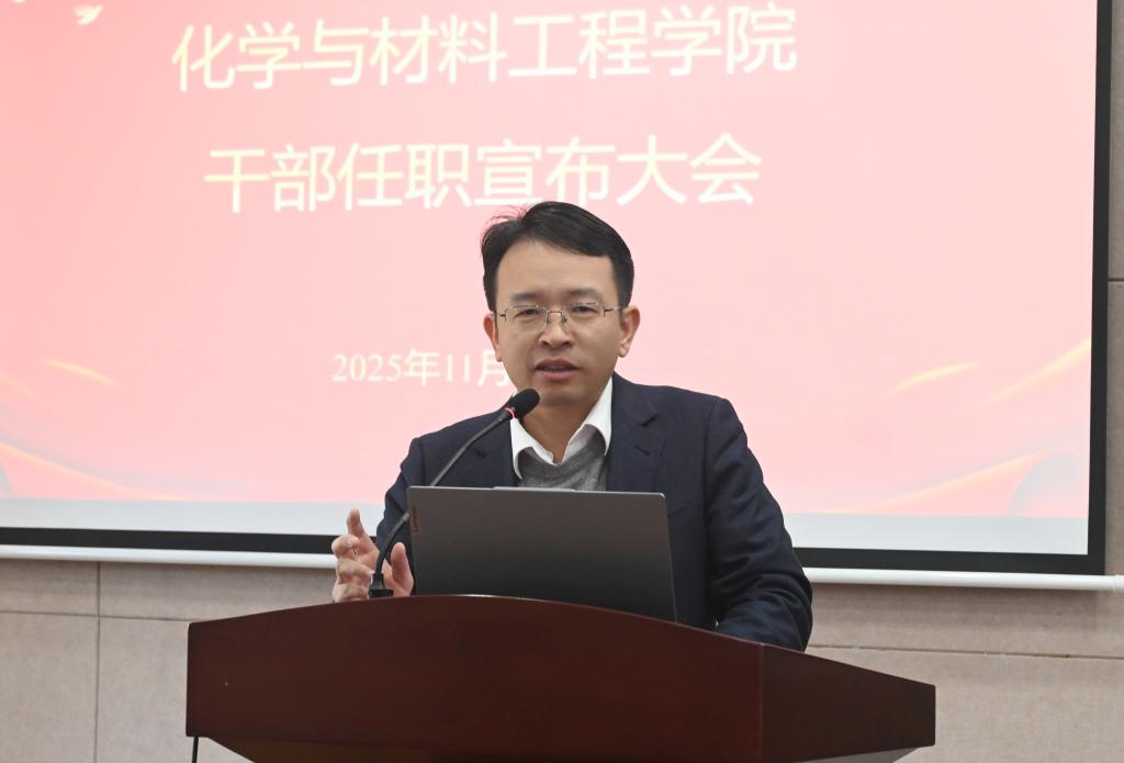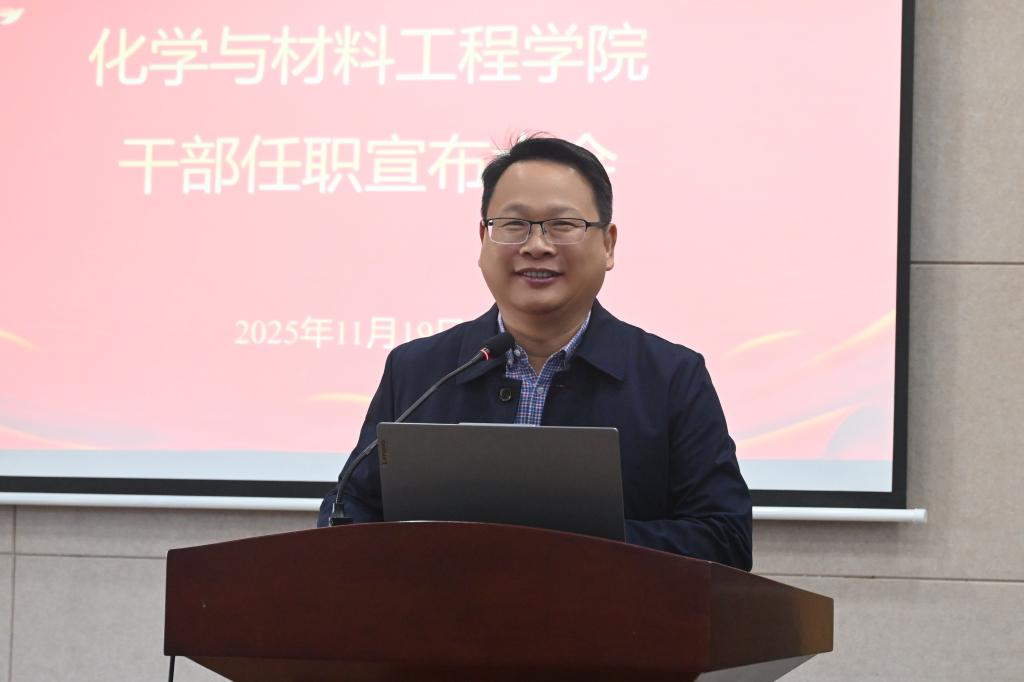 周雪晖作表态发言。她表示,重回化工学院担任党委书记,既倍感温暖又深感使命光荣、责任重大。感谢学校党委的信任,感谢原班子和全体教职工打下的坚实基础。她围绕“传承与创新”“学习与实践”“责任与担当”三个方面分享心声,表示将传承学院优良传统,主动适应新形势新要求,加强理论学习和学科专业认知,与院长密切合作,团结带领班子成员坚持民主集中制,落实立德树人根本任务,深化教育教学改革,加强科研集成创新,提升治理效能,不负重托推动学院各项工作再上台阶。