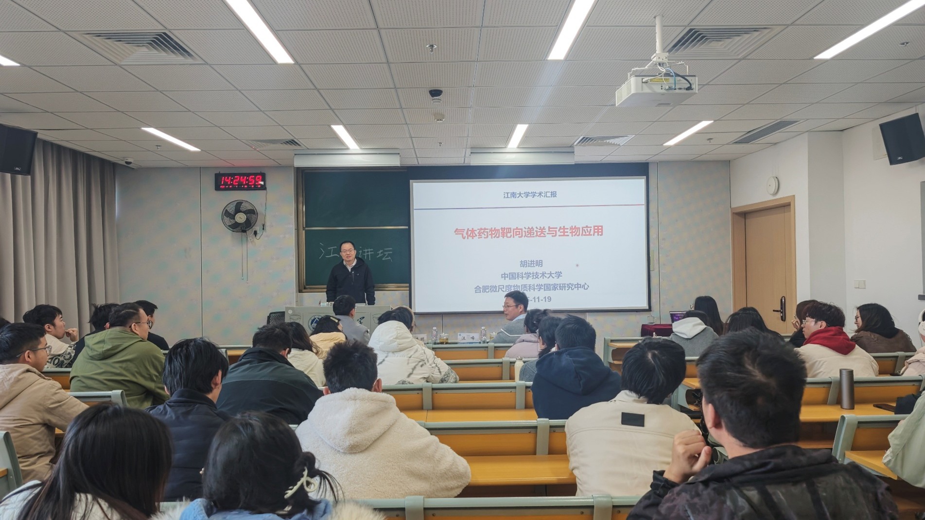11月19日下午,由江南大学研究生院主办,betway中国西汉姆联官网承办的江南讲坛第一百五十八讲和第一百六十讲学术报告在江南大学东氿校区知行楼C202教室举行。讲座由化工学院副院长马丕明主持,中国科学技术大学化学与材料科学学院胡进明、汪峰教授主讲,内容涵盖气体药物靶向递送、手性螺旋超分子功能材料等多个前沿领域,现场学术氛围浓厚,与会研究生热情高涨。
