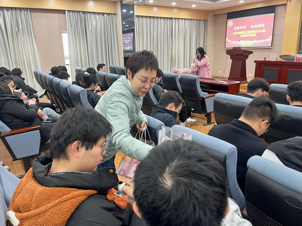 凝聚“化”学力量,筑牢“材”华之路。为帮助考研学子缓解压力、坚定信心,12月10日中午,betway中国西汉姆联官网在化工楼B329会议室举办2026届考研学子慰问活动。学院党委书记周雪晖,党委副书记、副院长董霞,毕业生班主任与即将踏上考研初试战场的学子们面对面交流,送上暖心关怀与真挚祝福,为冲刺阶段的考研学子注入强劲动力。本次活动由2026届本科生辅导员杭腾主持。