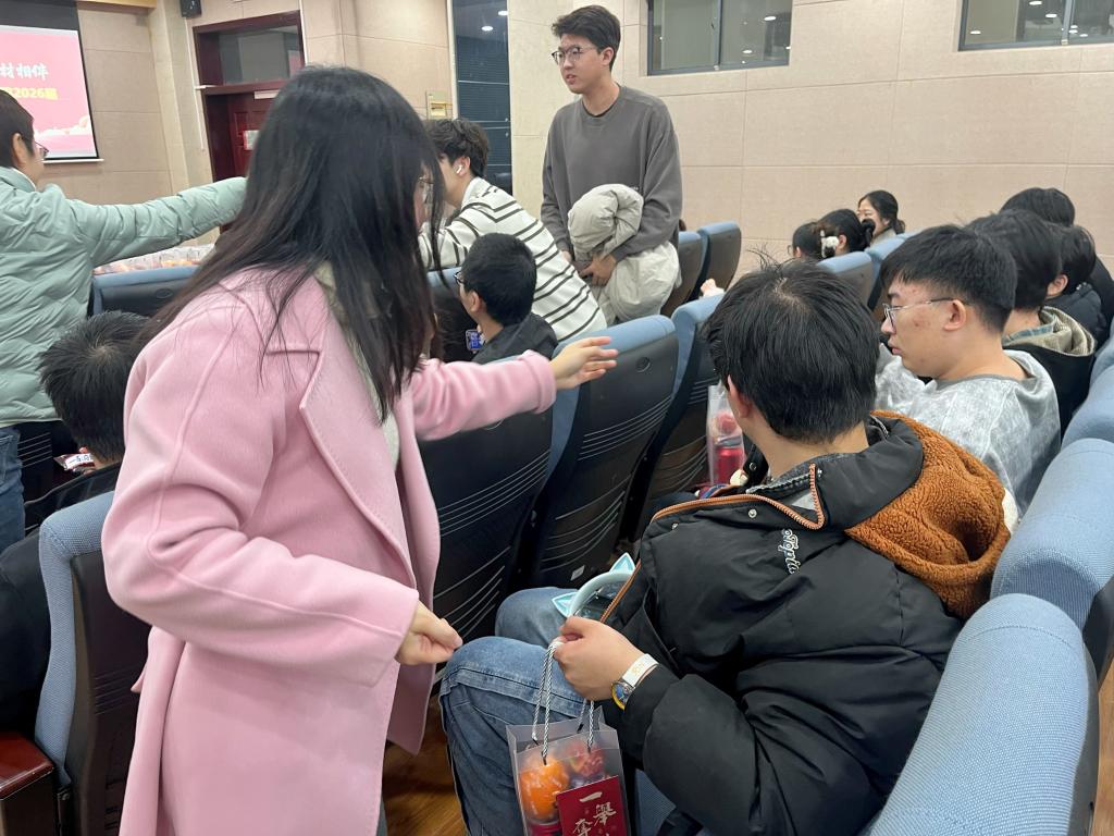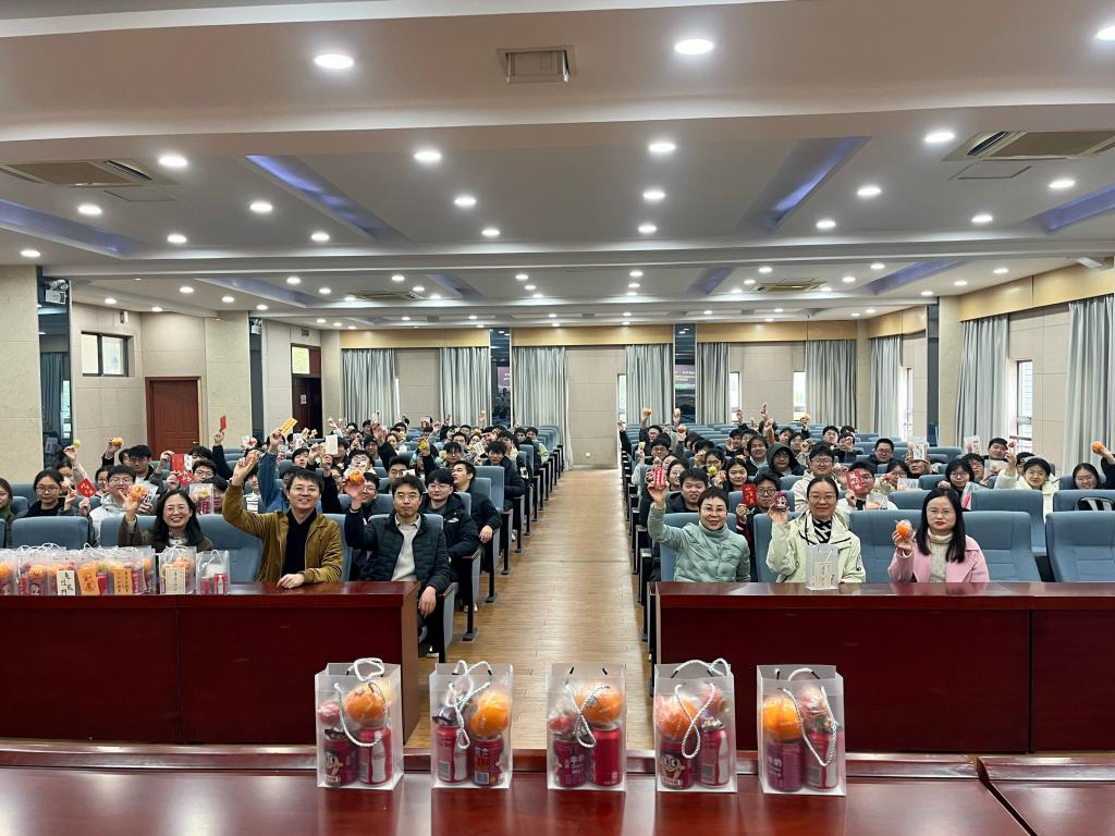 班主任作为同学们成长路上的引路人,始终默默关注着大家的备考动态。活动中,班主任老师被邀请至台上根据学院精心准备的 “考研加油包” 里物资的专属寓意,为考研学子们送上真挚的祝福与深切的期盼:橙子寓意“橙风破浪,心想事‘橙’”,定制祝福语的可口可乐传递“‘可’喜可贺,‘乐’在其中”的美好祝愿,士力架象征“‘士’不可挡,‘巧’克难关”,逢考必过钥匙扣寄托“手握好运,一‘扣’定音”的期许。领导和班主任老师们亲手将装满心意的加油包送到每位同学手中,同学们手持“考研加油包”,共同合影留念,定格下这温暖感人的瞬间。