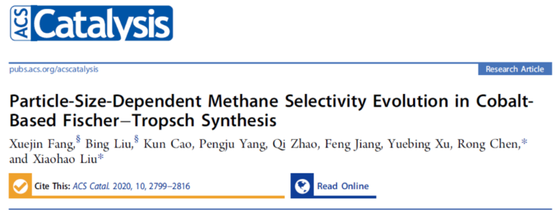 近日,我校刘小浩教授团队利用原位表征技术和量子化学计算等手段在揭示钴基费托合成反应中氧化亚钴(CoO)活性中心、纳米粒子表面金属钴(Co)原子(晶面/晶边、角)落位相关的结构演变行为及其对甲烷选择性的影响,及Co与ZrO2界面效应等基础科学问题的研究中取得重要进展,研究成果发表在催化领域Top期刊《ACS Catalysis》(ACS Catal. 2020, 10, 2799-2816),该论文化工学院硕士研究生方雪瑾和青年教师刘冰副教授为共同第一作者,华中科技大学机械学院陈蓉教授和我校化工学院刘小浩教授为共同通讯作者。