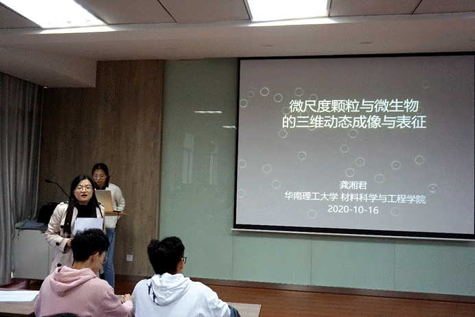 2020年10月16日,华南理工大学材料科学与工程学院龚湘君教授来我院访问,并于下午3:30在betway中国西汉姆联官网A316学术报告厅作了主题为“微尺度颗粒与微生物的三维动态成像与表征”的学术报告,化工学院罗静教授主持了该场报告。龚湘君教授从材料表征的基本需求出发,分析了微尺度三维成像技术,使我们深入了解诸如颗粒粘附、脱附、微生物附着生长等诸多重要的物理现象。龚湘君教授展示了一种基于光学干涉的三维显微成像技术-数字全息显微镜(Digital Holographic Microscopy (DHM)),并发展了高通量、高精度的三维追踪算法。他们的研究揭示了细菌对界面物理化学性质的主动响应是细菌近界面行为的重要组成部分,为我们设计新一代抗菌、防污和防腐材料提供了新思路。该场学术报告不仅吸引了化工学院众多师生,同时还吸引了许多食品学院、纺服学院和环土等学院的同学与老师聆听报告,现场气氛十分活跃。报告结束后,龚湘君教授就参会老师和学生的相关问题进行了详细的解答。