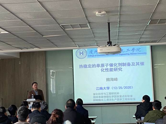 2020年12月25日上午,厦门大学熊海峰教授应邀来我院访问,并在betway中国西汉姆联官网A316报告厅做了题为“热稳定的单原子催化剂制备及其催化性能研究”的学术报告。本次报告会由娄阳教授主持,众多老师和学生参加了此次报告会。报告现场师生就“单原子的发展历史、设计理念、合成与稳定方法”等话题进行了热烈的讨论和交流。