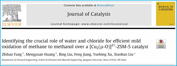 近日,我校化工学院刘小浩教授团队在揭示[Cu2(μ-O)]2+-ZSM-5催化甲烷低温非自由基氧化耦合溶剂水强化产物脱附和活性中心再生高效制甲醇的研究中取得重要进展,研究成果在催化领域重要期刊《Journal of Catalysis》上发表(J.Catal. 2022, 405, 1-14)。该论文化工学院博士研究生房志浩和硕士研究生黄梦圆为共同第一作者,刘小浩教授为通讯作者。