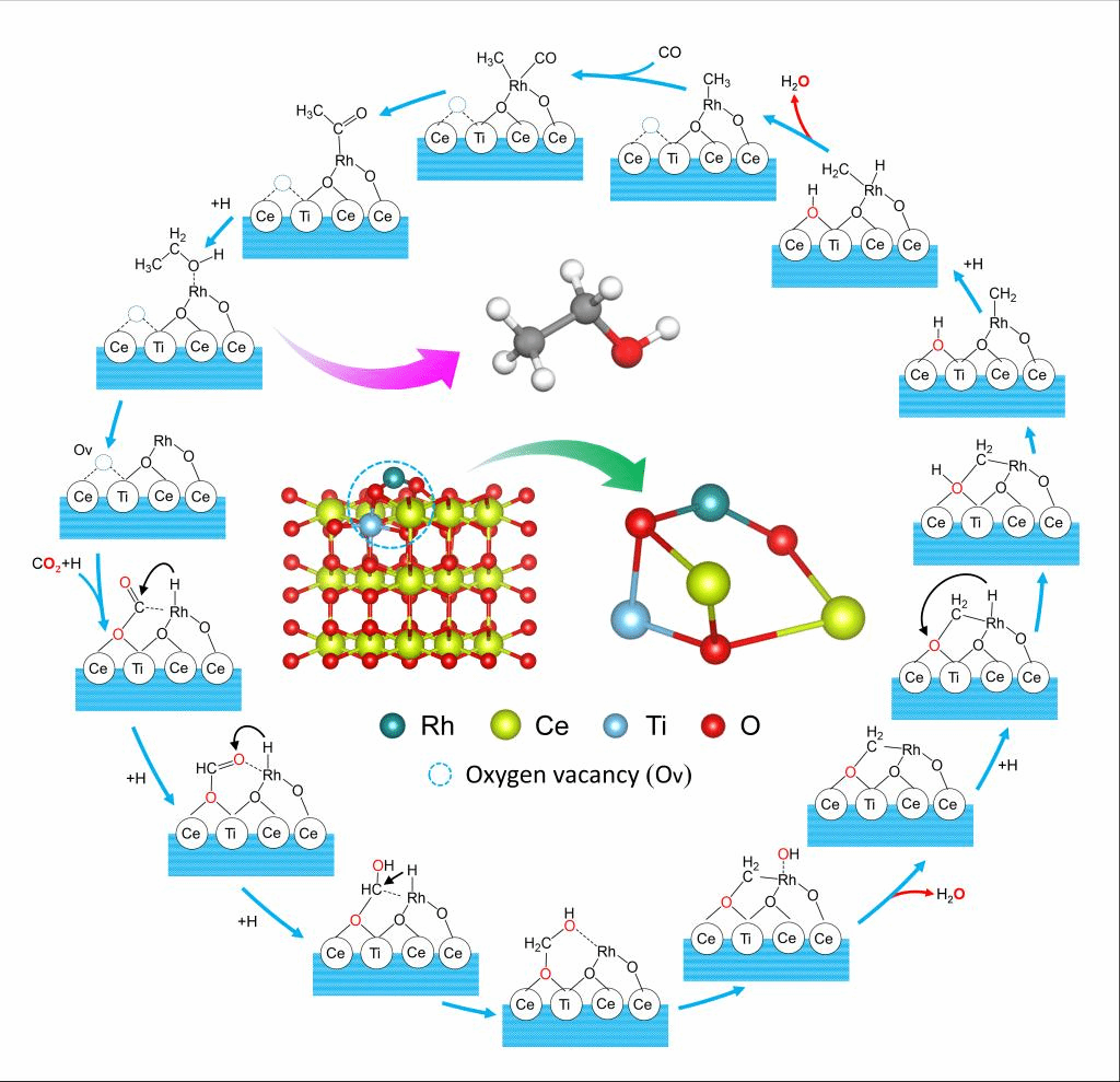 图1. Rh1/CeTiOx催化剂催化CO2加氢一步制乙醇