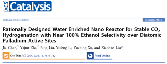 近日,江南大学刘小浩教授团队在设计构建纳米“蓄水”膜反应器稳定结构封装的“双钯位点”应用于二氧化碳热催化连续流一步高效稳定制乙醇的研究工作中取得里程碑式突破,这一成果近期以题为“Rationally Designed Water Enriched Nano Reactor for Stable CO2Hydrogenation with Near 100% Ethanol Selectivity over Diatomic Palladium Active Sites”发表在国际顶级催化期刊ACS Catalysis上(ACS Catal.2023, 13, 7110-7121)。江南大学化工学院博士研究生陈杰和硕士研究生查雅君为文章的共同第一作者,江南大学化工学院刘小浩教授为文章的通讯作者。