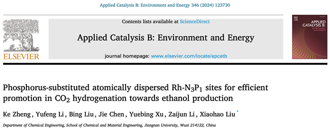 近日,江南大学化工学院刘小浩教授团队在构建P-Rh位对(Site Pair)活性中心高效催化CO2加氢制乙醇的研究工作中取得重要进展,这一研究成果在催化领域权威期刊《Applied Catalysis B: Environment and Energy》上发表。该论文化工学院博士研究生郑珂为第一作者,刘小浩教授为通讯作者。