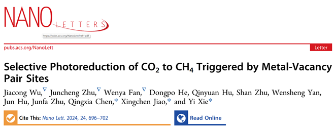 为了深入研究含氧缺陷的Nb2O5纳米片对CO2质子化过质子化程的影响,作者采用了原位表征技术和密度泛函理论计算来阐述光还原CO2为CH4的机理。在Nb2O5纳米片中,*CO到*CHO为吸热过程,阻碍了质子化进程。而在含氧缺陷的Nb2O5纳米片中形成的金属-氧缺陷双原子位点则使*CHO的形成受到控制,从吸热过程转变为自发放热过程。这种调控使随后的质子化过程得以进行,促进了CH4的生成。此外,程序升温脱附显示含氧缺陷的Nb2O5纳米片有较低的CH4起始解吸温度,表明生成的CH4分子比Nb2O5纳米片更容易从表面释放出来,这证实了金属-氧空位对位点有利于CH4的生成,表明含氧缺陷的Nb2O5纳米片具有更高的CH4生成活性。本文从实验/理论上验证了通过构建金属−氧空位双原子位点可以促进CO2质子化偶联,提高了光还原CO2制CH4的选择性和活性,为有效地调控CO2光还原过程中的产物选择性提供了新的见解。该论文化工学院2022级硕士研究生吴佳聪和2022级硕士研究生范文亚为共同第一作者。