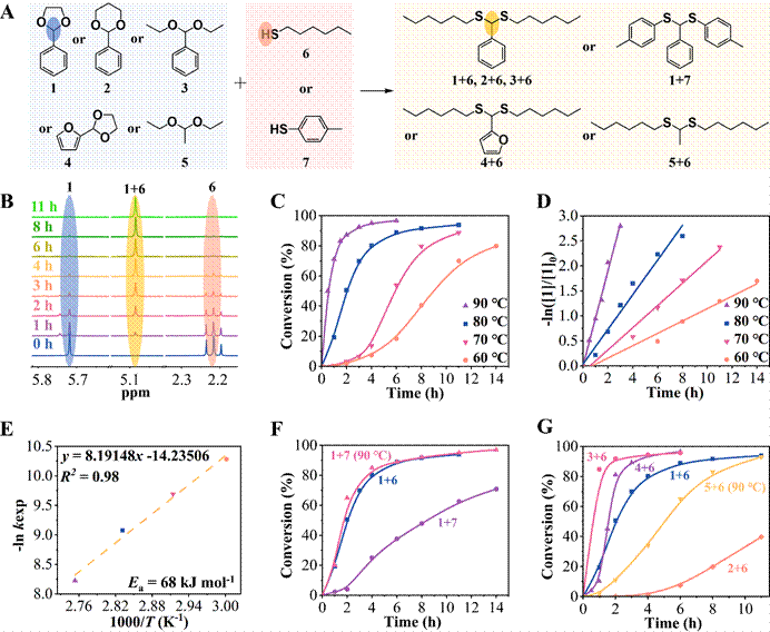 图1 缩醛-硫醇反应动力学及影响因素