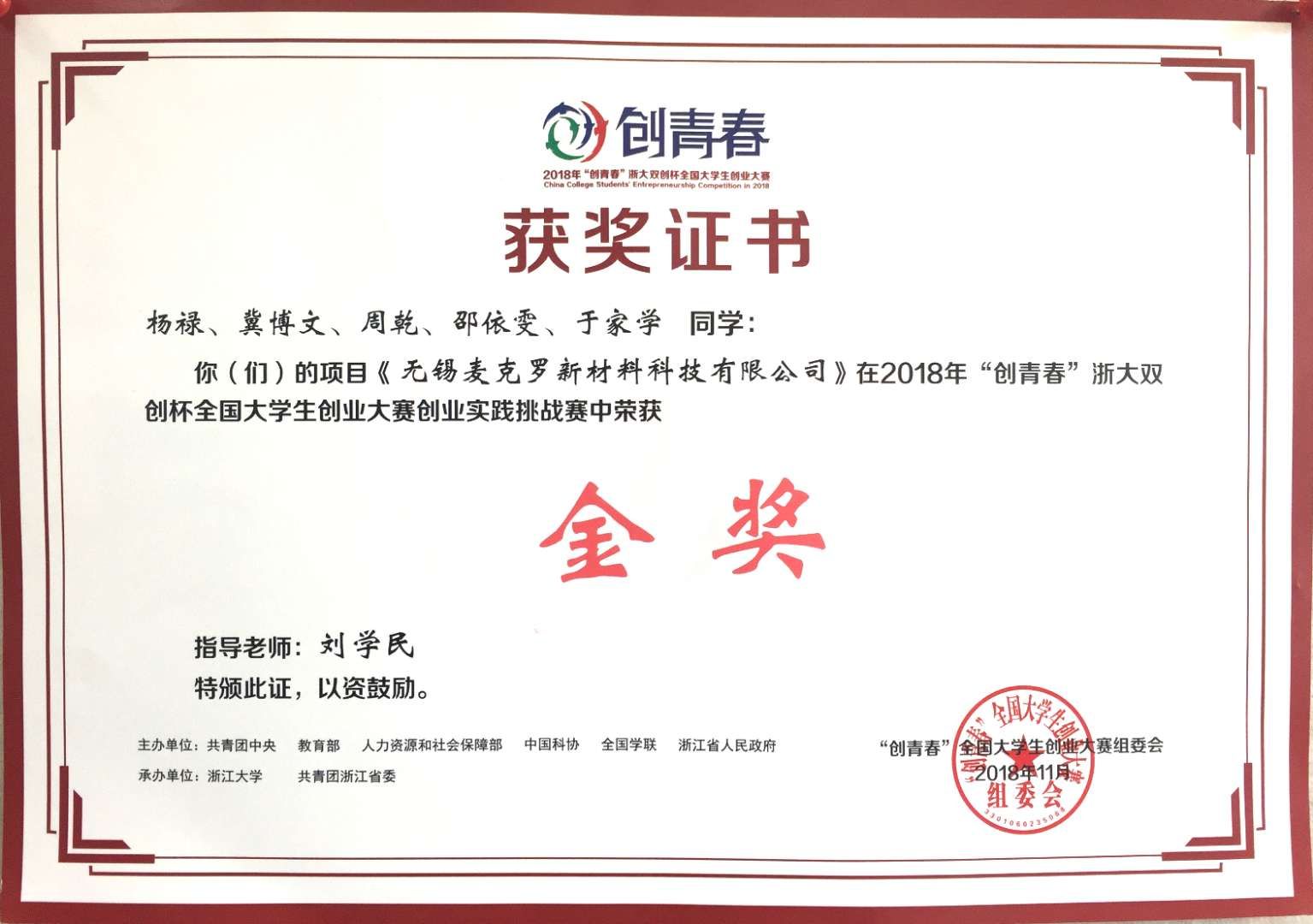 第七届中国大学生高分子材料创新创业大赛(PMC)一等奖