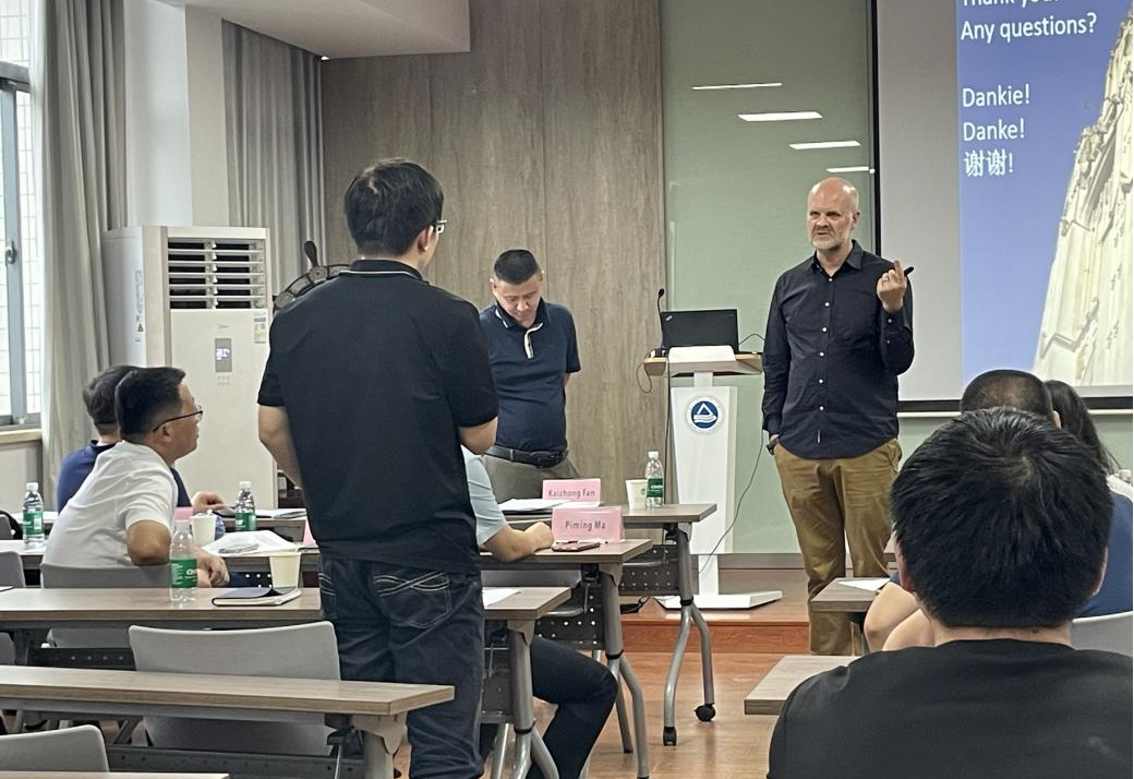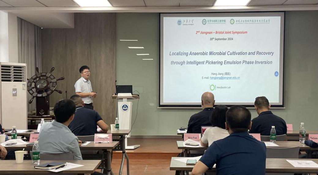 会议开幕式由马丕明主持。首先,秦洁介绍了江南大学的发展以及两校目前在学生联合培养、科学研究等方面正在开展的卓有成效的合作,期待未来双方在国际合作交流方面取得更丰硕的成果。潘庆伟对布里斯托大学一行及嘉宾的到来表示热烈欢迎、对江南大学与布里斯托近年来取得的合作成果表示祝贺,并预祝本次双边研讨会圆满成功。Wuge H. Briscoe、Charl F. J. Faul以及我院Tatsuo Kaneko教授、蒋航副教授、杜家仁副教授、在读博士生王淑钰等围绕 “Colloidal, Soft & Functional Materials”的会议主题,结合最新的研究成果分别做学术报告,并与与会师生进行了热烈的讨论和交流。