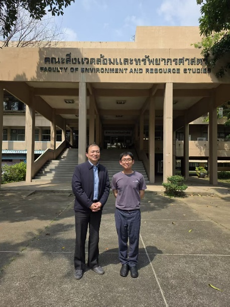 与Phanthuwongpakdee博士在玛希隆大学环境与资源研究学院入口处合影