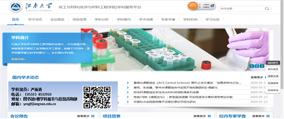 化学与材料学科服务平台内容按一级学科划分,对学科专业信息资源、院系资源和图书馆资源等进行聚合重组,包括学术动态、会议预告、项目信息、学科分析、学科期刊、学术成果、论文收录、专家学者、学科机构、学习社区等栏目;读者可以通过互动模块在平台上提交自己的意见、建议、推荐资源,与学科馆员进行在线咨询。